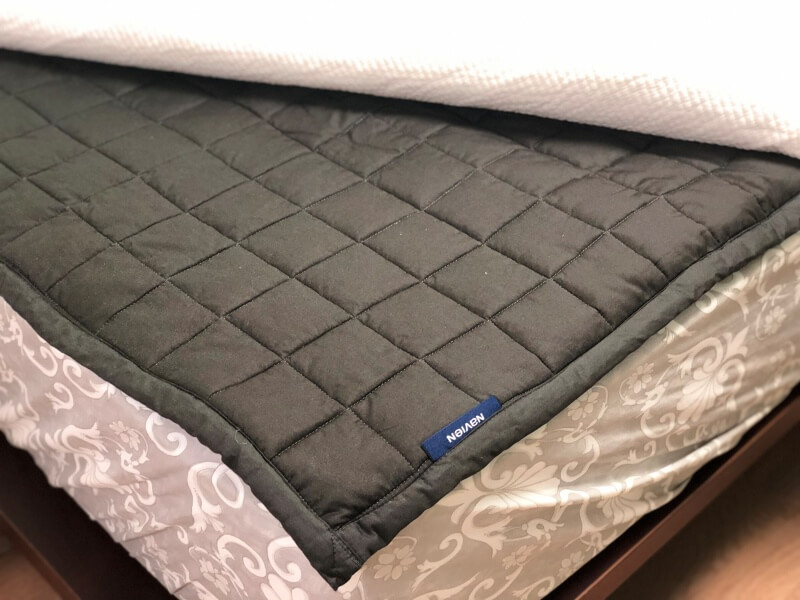 침대 패드를 위에 깔고 나면 온수매트가 있는지도 모를 정도로 슬림합니다. 경동 나비엔 온수매트는 기능적으로도 좋지만 디자인도 마음에 들고 슬림한 형태라서 누웠을 때도 이질감이 없어서 좋았습니다.
