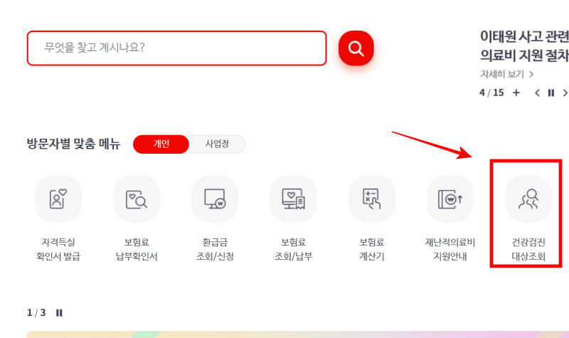 미리 고지가 되지 않았다면 국민건강보험 사이트에서 조회할 수 있습니다. 건강검진 대상자 조회 바로가기 >>>