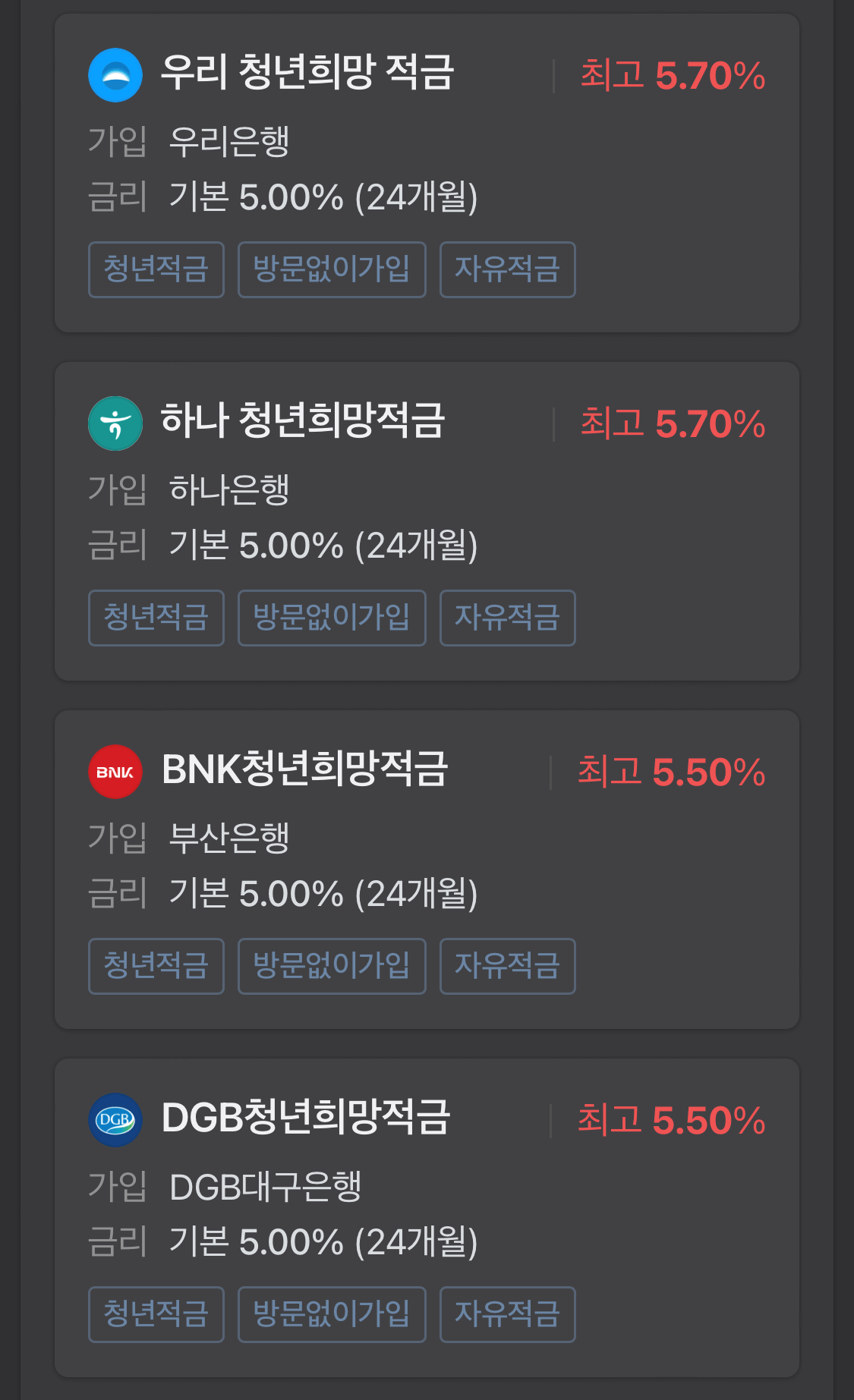 - 금리 : 기본 5% + 우대이자율 1% = 최고 6%