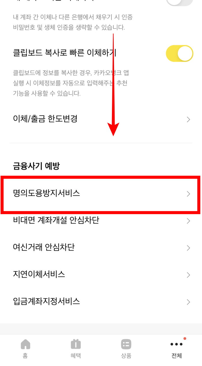 카카오뱅크 명의 도용 방지 서비스 가입방법